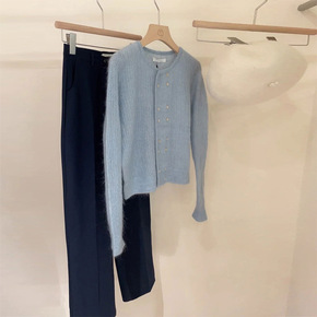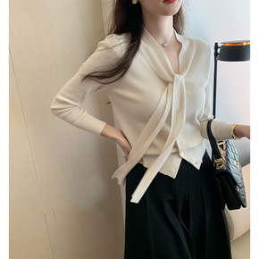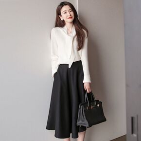 港风时尚职业两件套装复古chic冰丝长袖针织开衫气...