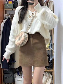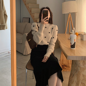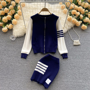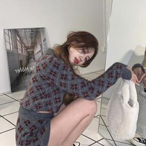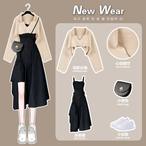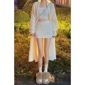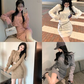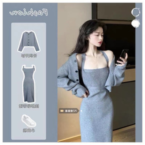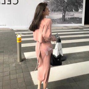 秋冬感女御姐范港风复古慵懒风针织开衫毛衣两件套装裙...