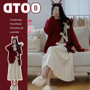 御姐轻熟风针织连衣裙女秋冬季2021年新款圣诞毛衣...