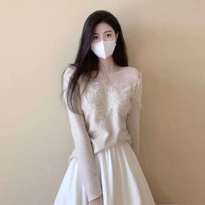 2021新款百搭立体刺绣小清新港味复古chic针织...