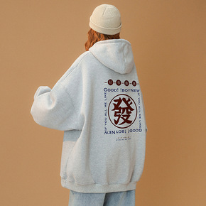 国潮卫衣女秋冬加绒加厚oversize潮牌情侣轻复...