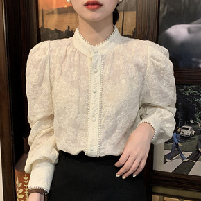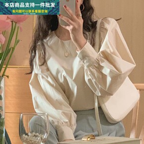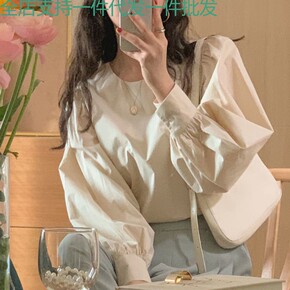 长袖衬衫韩国chic早春法式气质轻柔风圆领泡泡袖上...