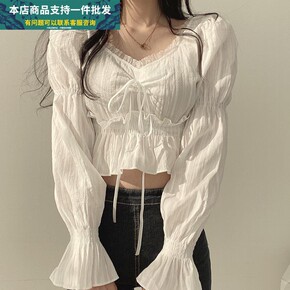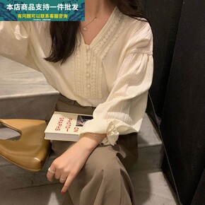 方领蕾丝衬衫韩国chic秋秋新款法式小众甜美荷叶边...