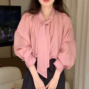 优雅法式衬衫女2022秋季新款韩版chic纯色简约...