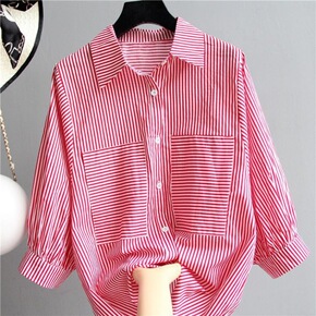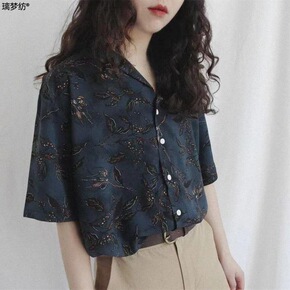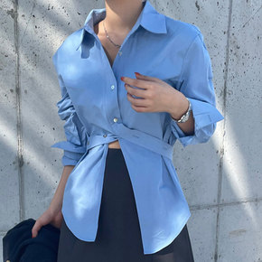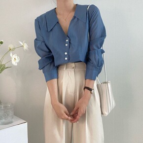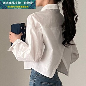 后开叉宽松翻领短款长袖衬衫女韩国chic早秋法式小...