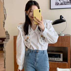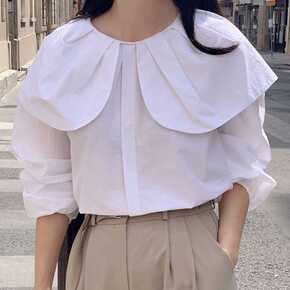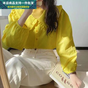 2021韩国chic设计款娃娃领长袖衬衫女气质简约...