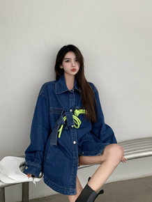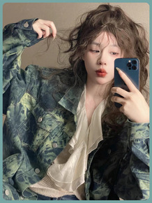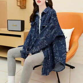 春秋设计感2022涂鸦印花牛仔长袖开衫外套女网红上...