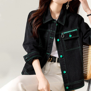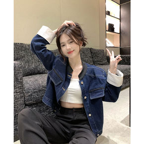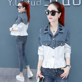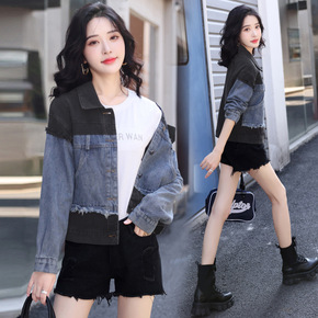 牛仔拼接外套女2022春秋新款时尚宽松初秋网红百搭...
