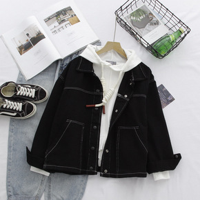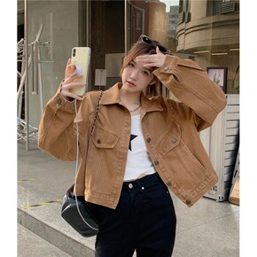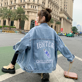 牛仔外套女短款春秋装新款韩版宽松原宿bf风工装学生...