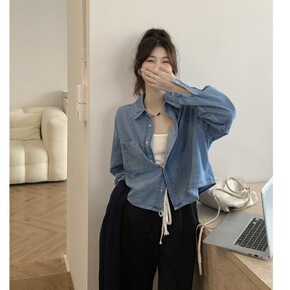大码胖韩版牛仔衬衫女春秋装宽松叠穿衬衣外套女长袖上...