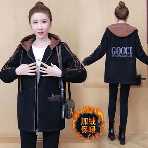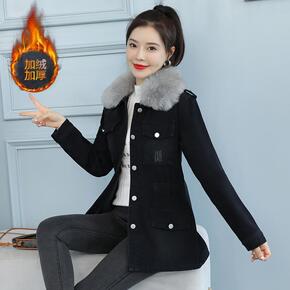 加绒加厚牛仔外套女中长款秋冬新款时尚修身减龄牛仔棉...