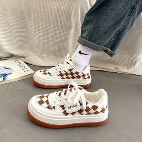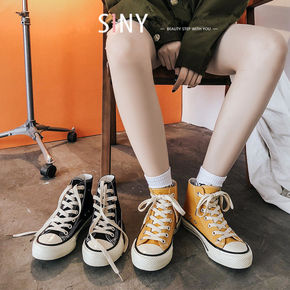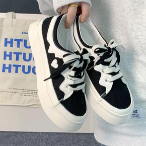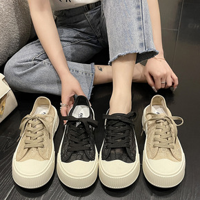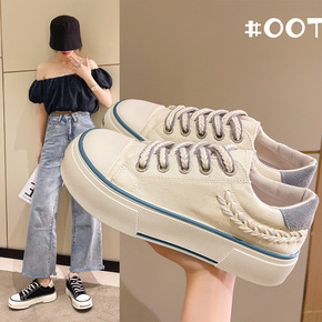 小众港风百搭帆布鞋女鞋子潮2022年新款厚底系带小...
