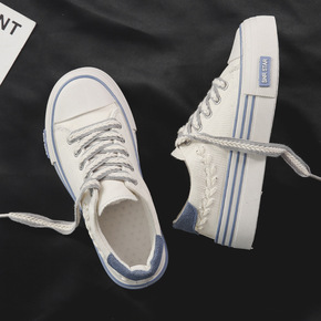 秋季港风街拍帆布鞋女平底学生休闲鞋韩版百搭小白鞋2...