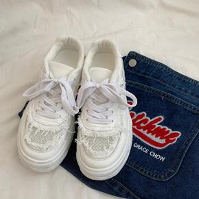 夏季网面透气小白鞋女2022新款小众圆头感平底in...