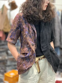 港风复古印花衬衫女手绘复古风巴洛克宽松长袖西装领花...