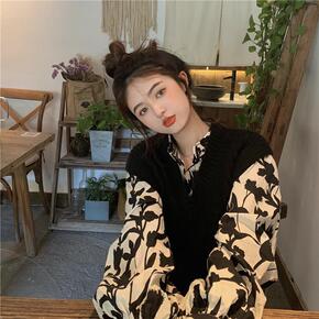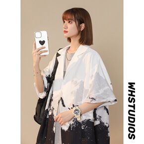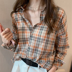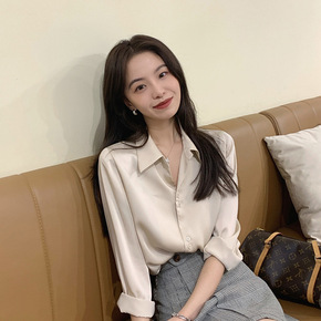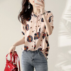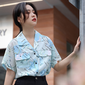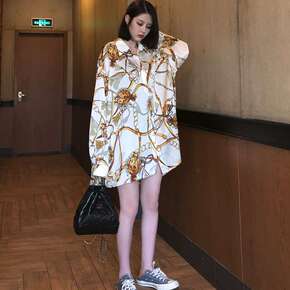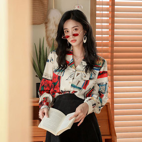 2021秋季新款女长袖复古港风印花衬衣小众网红百搭...