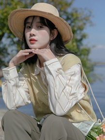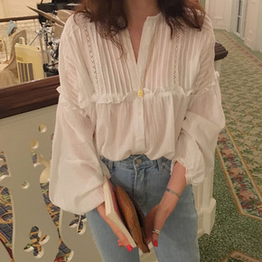 2021春季新款日系森女尖领宽松文艺港风棉上衣复古...