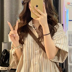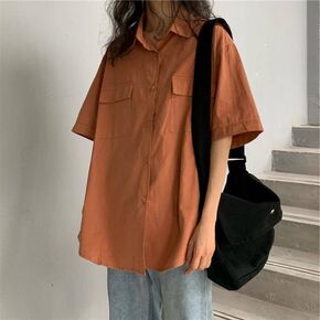 设计感小众短袖衬衫女夏新款港风复古学生工装衬衣韩版...