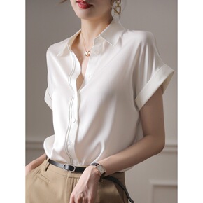 港风复古白色衬衫女夏季短袖薄款别致设计感小众上衣法...
