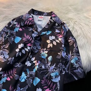 复古碎花印花短袖衬衫男女街头港风古着原宿夏威夷泰国...