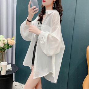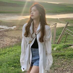 2022夏季新款薄衬衫女中长款复古港味长袖防晒衬衣...
