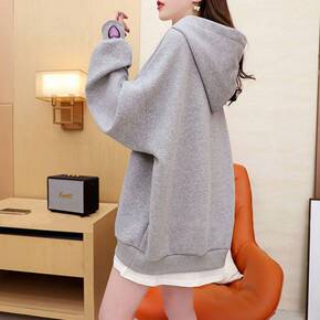 卫衣女2022秋冬季韩版潮连帽纯色加绒加厚学生宽松...