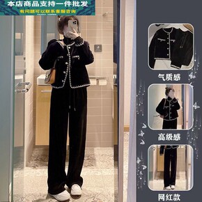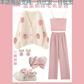 针织开衫休闲裤三件套潮秋季温柔系穿搭女2022新款...