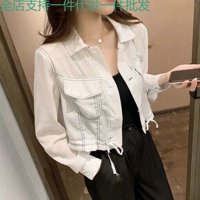 长袖外套女早秋2022新款设计感小众短款衬衫百搭外...