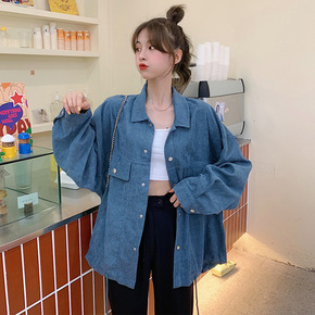 灯芯绒外套女复古港味春秋2020新款韩版宽松bf风...