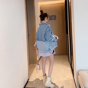 秋装2020年新款复古港味拼接牛仔外套女宽松韩版b...