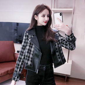 实拍炸街皮衣网红洋气港味花毛呢短外套小香机车西服装...