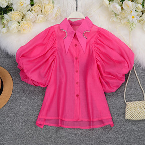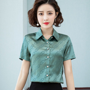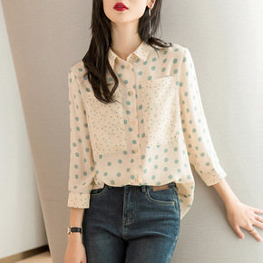 2020春新款韩版宽松雪纺衬衣女长袖港风丝光缎面垂...