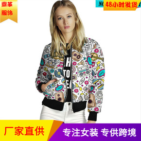 粉色牛仔涂鸦外套女2021春秋季新款复古港味宽松设...