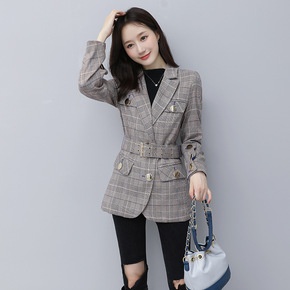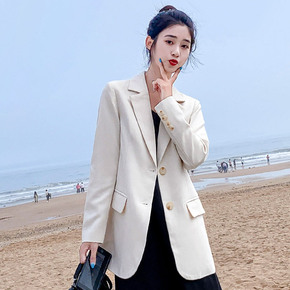 实拍小西装2021新款女外套复古港味拼接撞色韩版宽...