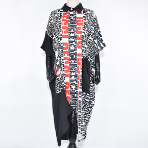 跨境宽松大码设计感轻熟复古港味连衣裙中长款字母印花...