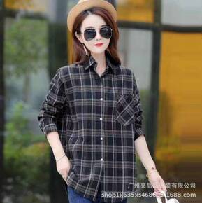 2021春秋新款大格子衬衫女长袖韩版宽松港味复古c...