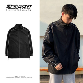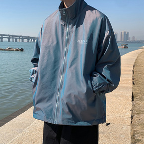 潮牌立领亮光夹克学生春季潮流宽松帅气情侣反光bf冲...