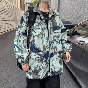 港风bf工装迷彩夹克男春秋潮牌ins情侣款学生超火...