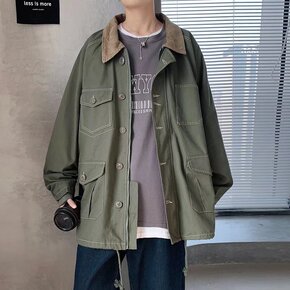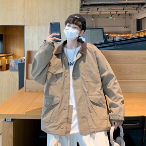 工装夹克男外套春秋季撞色宽松韩版潮流大码ins港风...