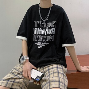 2021年新款港风t恤男短袖ins潮牌潮流夏季宽松...