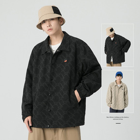 嘻哈设计感暗黑风长袖夹克ins潮流港式复古满印男装...