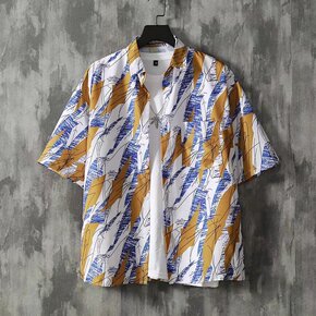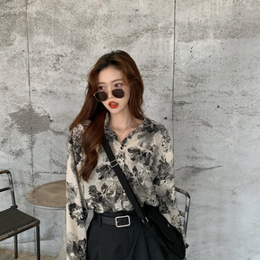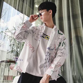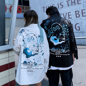 2022款男装衬衫酷涂鸦港味宽松bf风学生小众衬衣...