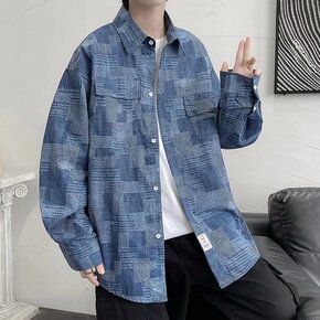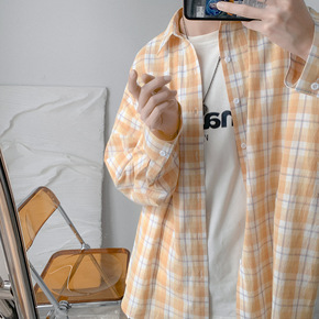 ins复古做旧格子牛仔衬衫男女潮牌街头bf风宽松情...