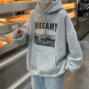 美式复古卫衣男秋冬加绒加厚oversize连帽外套...