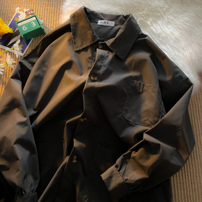 韩国ins日系复古潮流工装长袖衬衫男宽松春秋暗黑系...