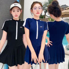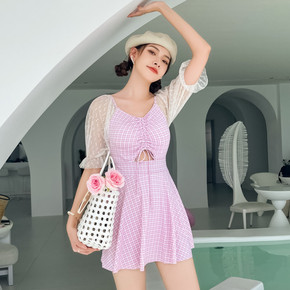 日韩ins超仙潮流新款游泳衣女遮肚保守显瘦连体裙式...