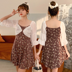 2022新款泳衣女裙式连体保守遮肚显瘦仙女范韩国i...