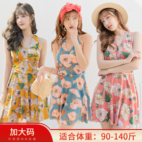 新款裙式连体泳衣 遮肚保守显瘦平角小胸聚拢韩国泡温...