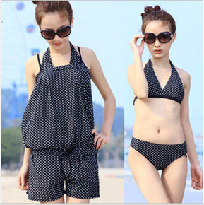 厂家外贸批发韩版清新性感比基尼三件套复古波点温泉保...