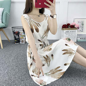 新款小个子年轻款棉绸连衣裙女夏时尚外穿人造棉碎花无...